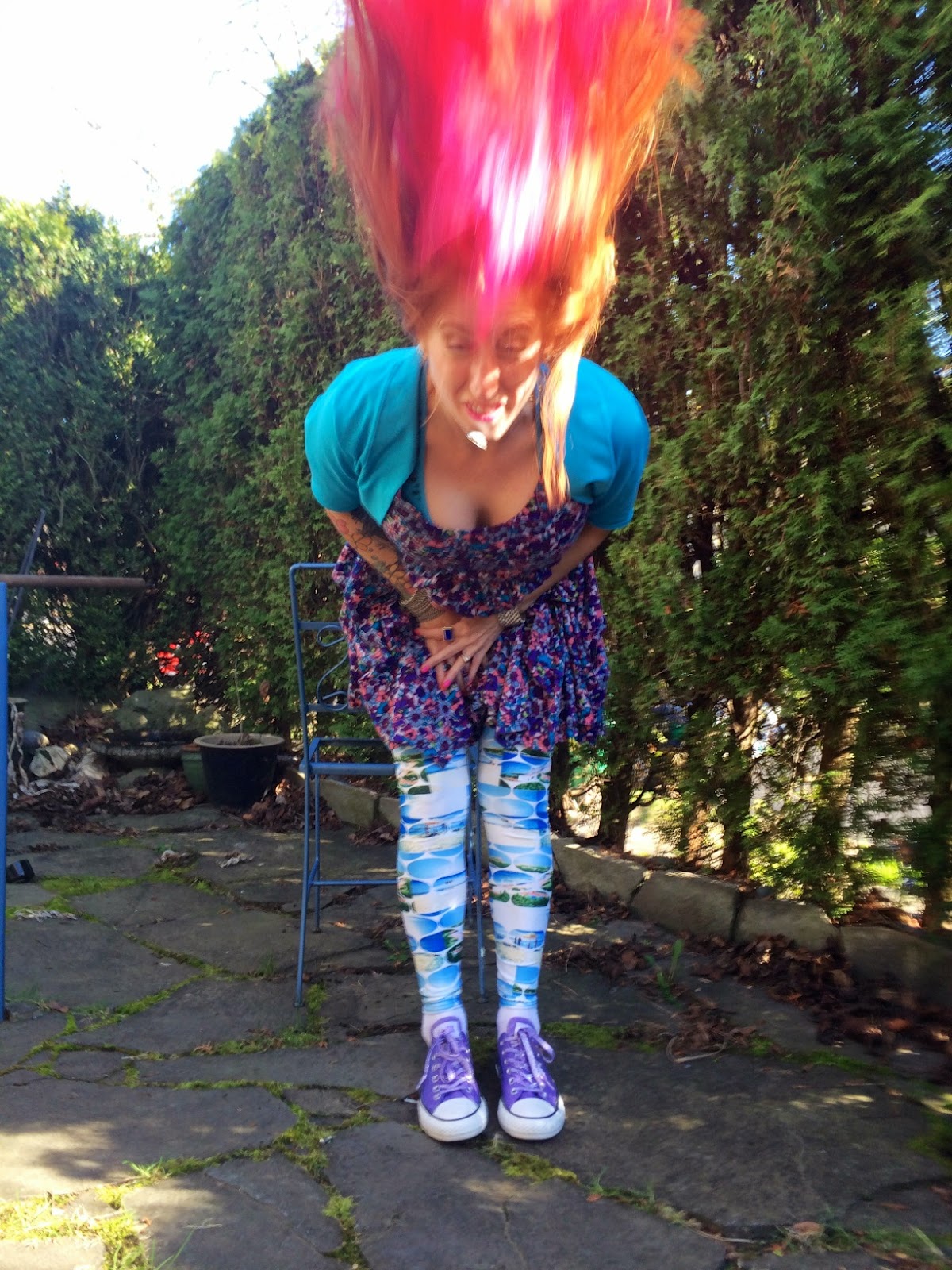 Wearing Kiss Me Kitty leggings makes me happy as well as anyone looking at my legs!